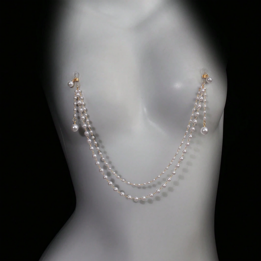 Fabriqués avec soin, ces piercings de tétons décoratifs ne nécessitent pas de perçage : ils se fixent facilement grâce à un système de serrage discret et confortable. Les perles blanches, symbole de pureté et d’élégance, s’accordent avec tous les types de peaux et ajoutent une allure glamour incomparable. Les chaînes tombantes créent un effet sensuel et raffiné qui attire le regard et souligne la beauté naturelle du buste.