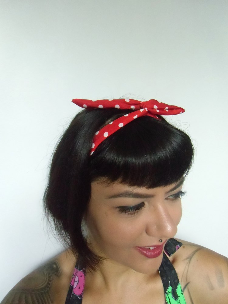 Finie la galère avec ce bandeau fin en tissu mat rouge à pois blancs qui possède à l'intérieur un secret pour vous simplifier toutes vos coiffures pin-ups : un fil de fer modulable semi-rigide qui se tord en fonction de ce que vous voulez faire de votre bandeau ! Pratique !