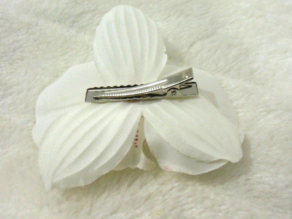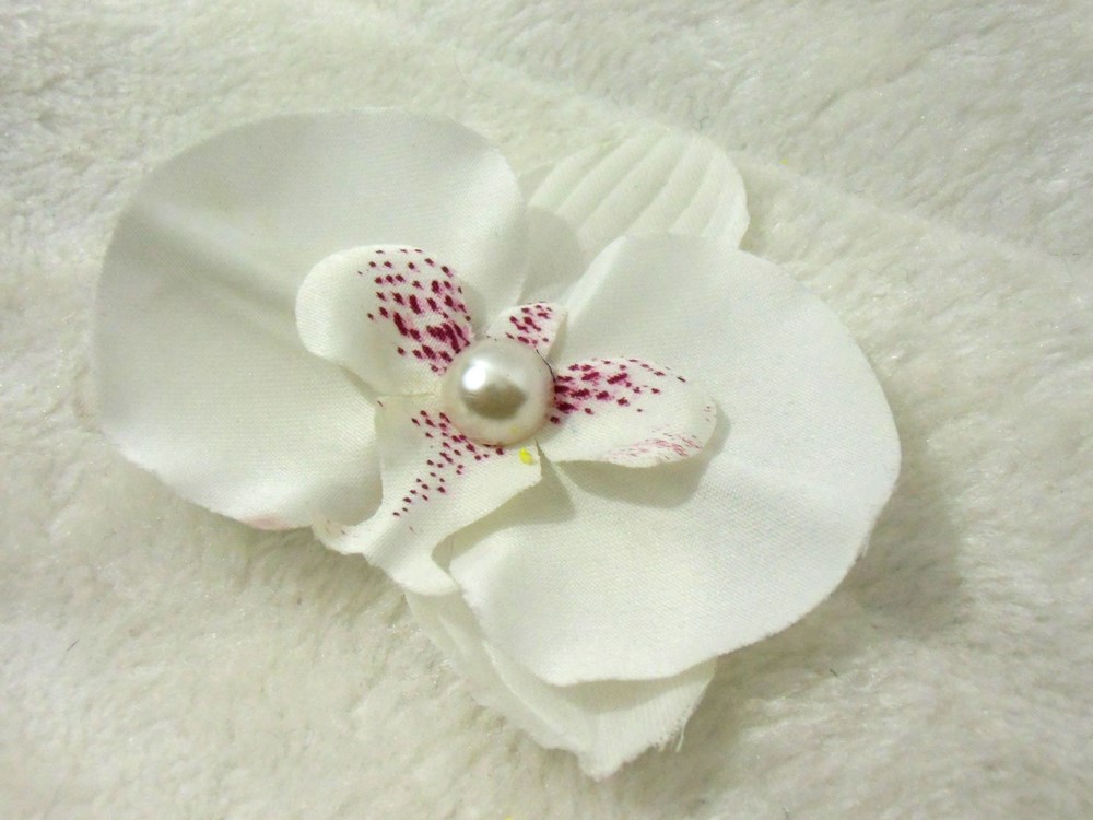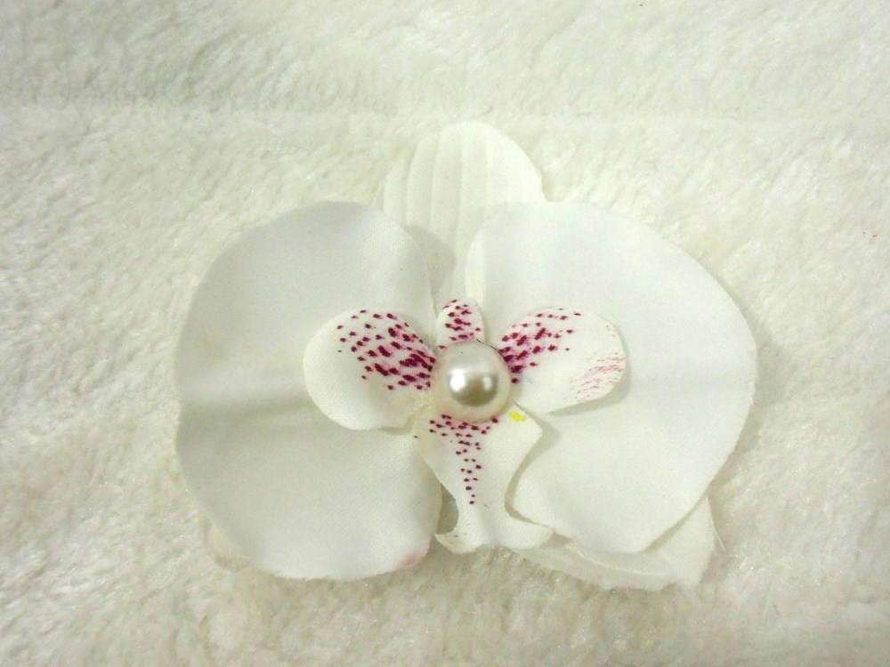Parez votre coiffure pin-up d'une fleur d'orchidée ornée d'une demi-perle blanche.