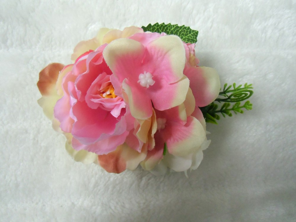 Pince clip à cheveux et broche composition florale "Beige and pink flowers"