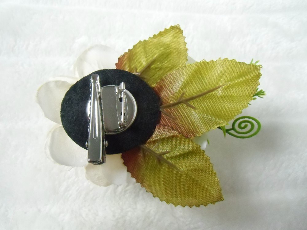 Pince clip à cheveux et broche composition florale "White and beige flowers"