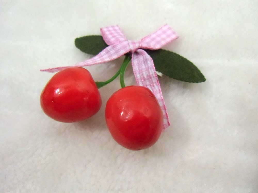 Envie d'une coiffure de pin-up gourmande ? Optez pour cette pince à cheveux à cerises à noeud.
