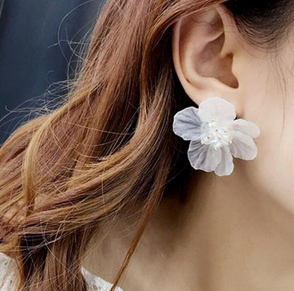 Donnez une touche romantique à votre look pin-up avec cette paire de boucles d'oreilles en forme de fleurs ornées au centre de perles transparentes !