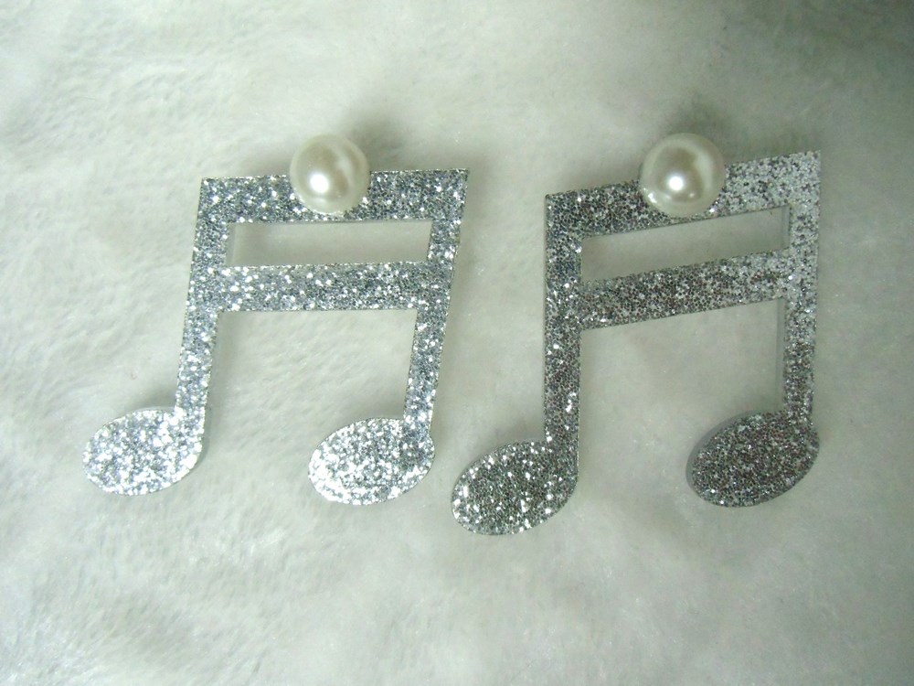 Ces boucles d'oreilles note de musique sont en plastique argenté à paillettes.