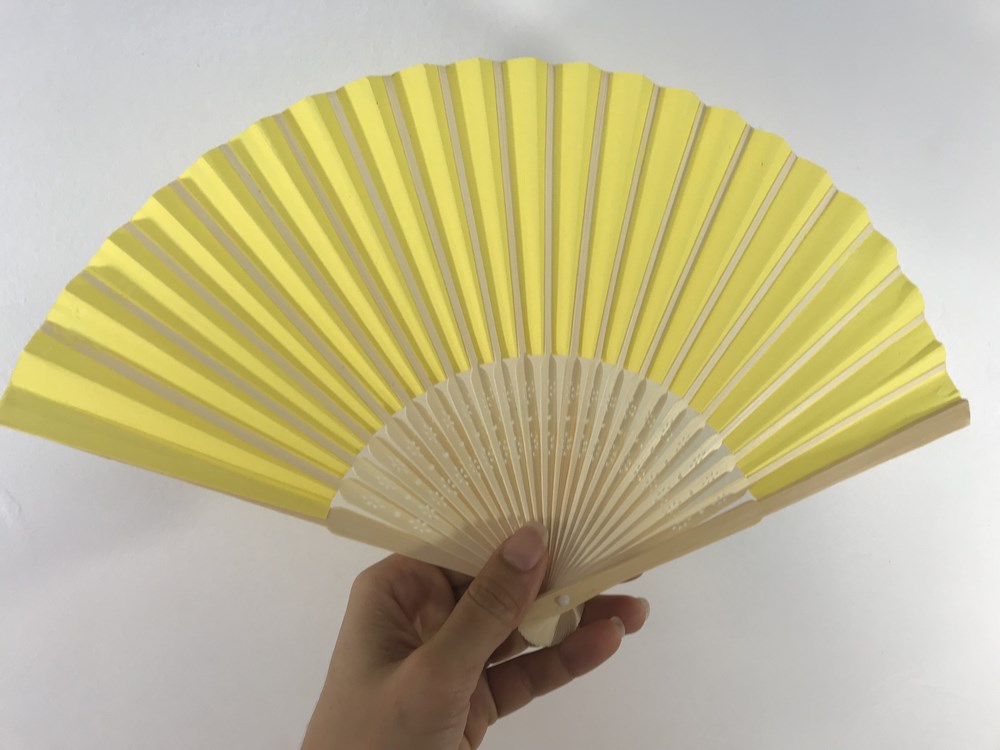 Cet éventail à main en bambou et papier jaune vous accompagnera partout !