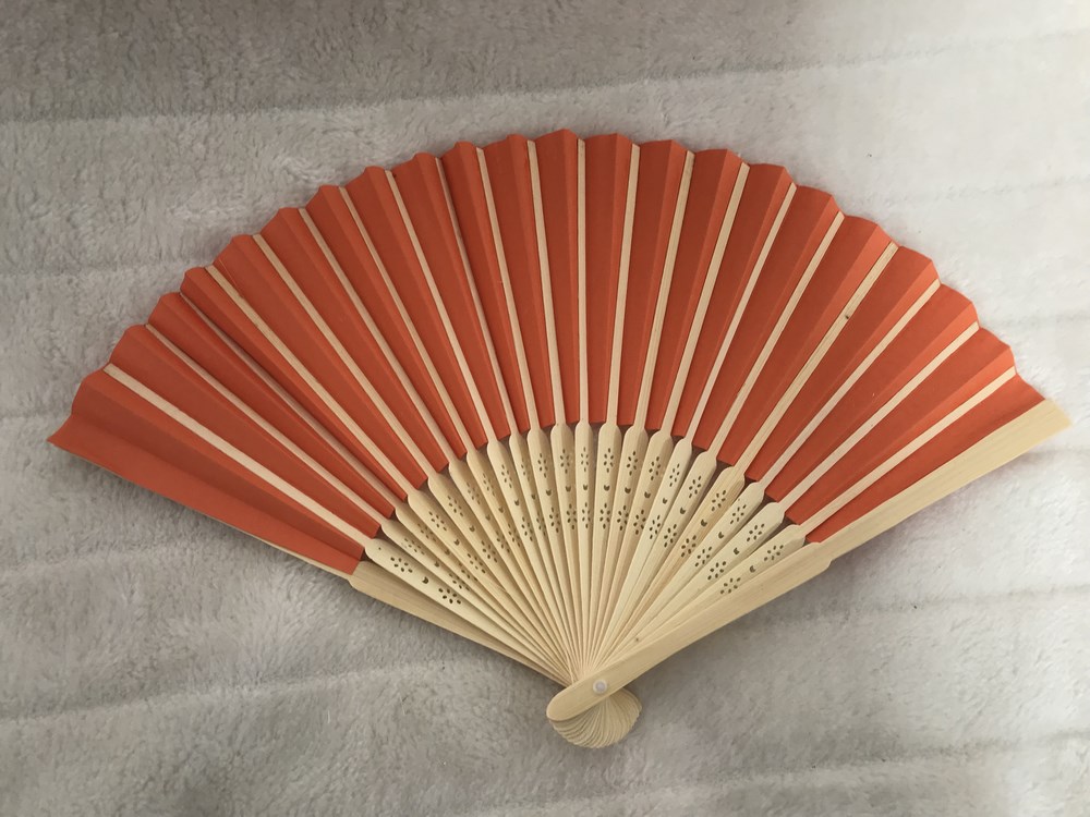 Cet éventail à main en bambou et papier orange vous accompagnera partout !