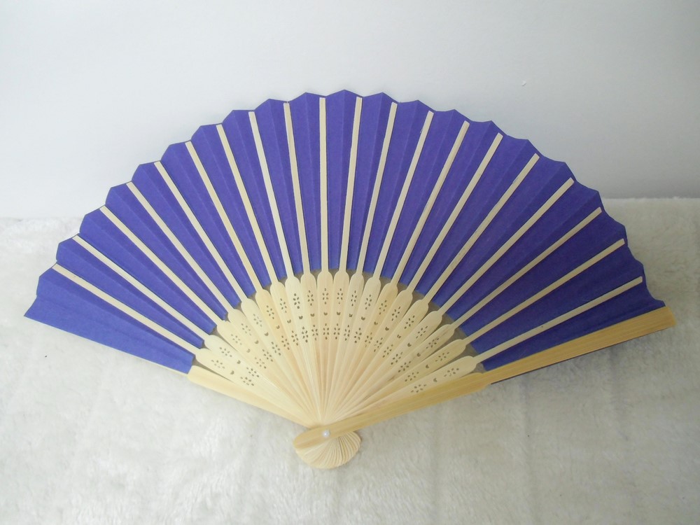 Cet éventail à main en bambou et papier violet vous accompagnera partout !