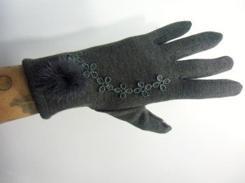 Ils sont ornés de fleurs en crochet sur le dos de la main et d'un pompon en fausse fourrure au niveau des poignets.