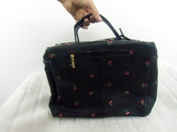 Craquez pour l'originalité de ce grand sac à main noir à cerises !
