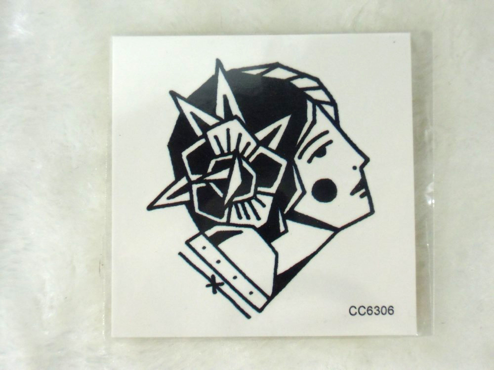Petit tatouage temporaire old school portrait de gitane 6x6 "Gypsy"