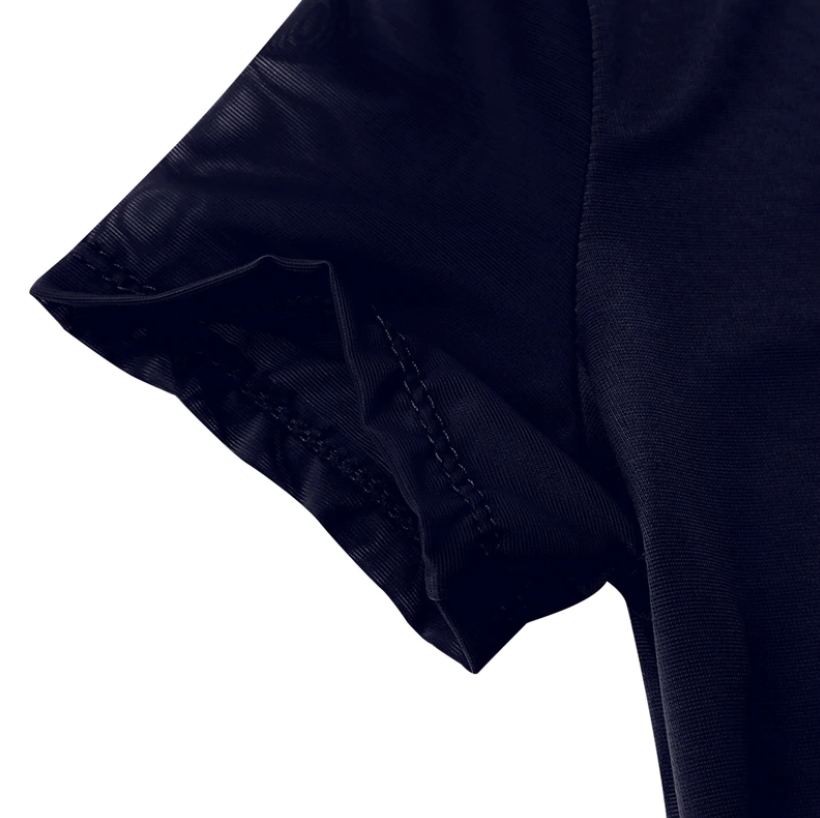 Totalement transparent (fine résille), il possède des manches courtes, un col rond et une échancrure diablement sexy à l'entrejambes !