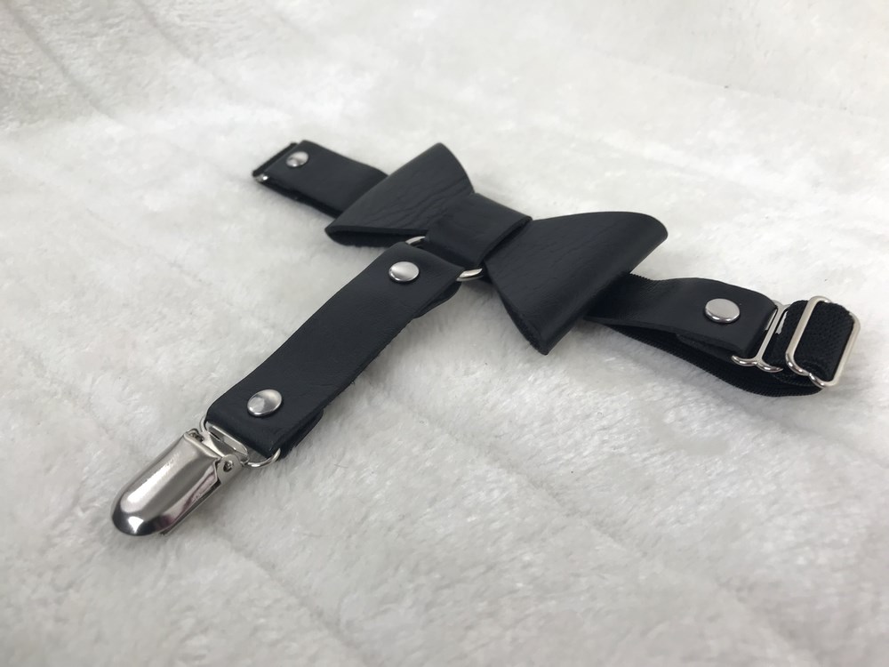 Craquez pour cette jarretelle à l'unité en simili-cuir noir ornée d'un noeud noir !