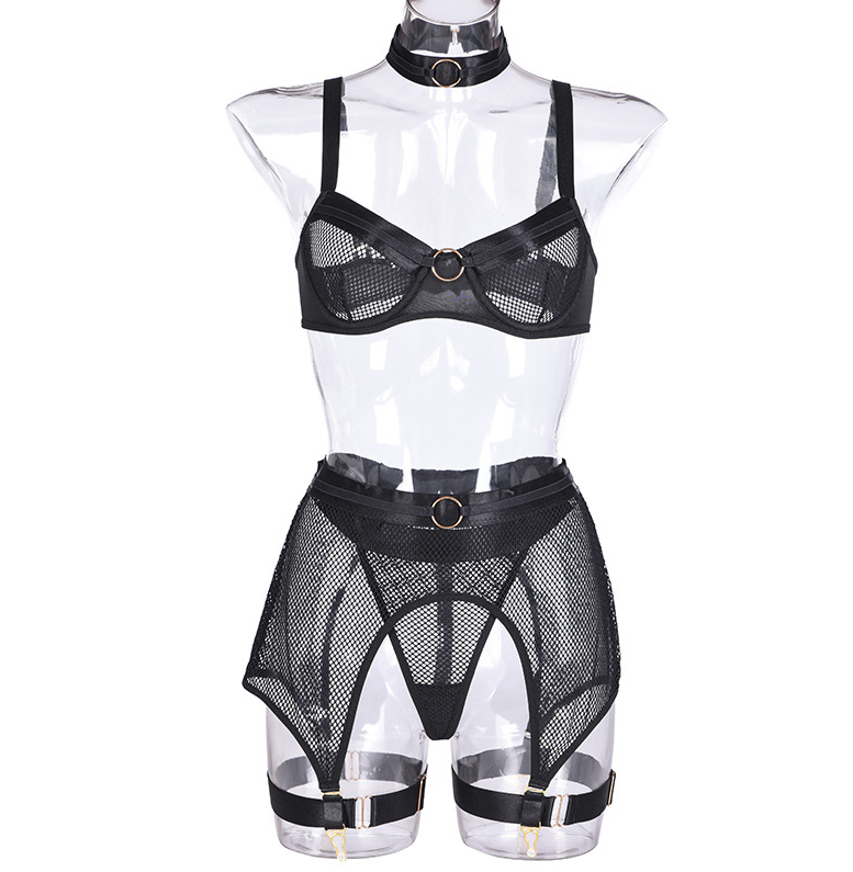 Découvrez cet ensemble lingerie en résilles sauvagement sexy.