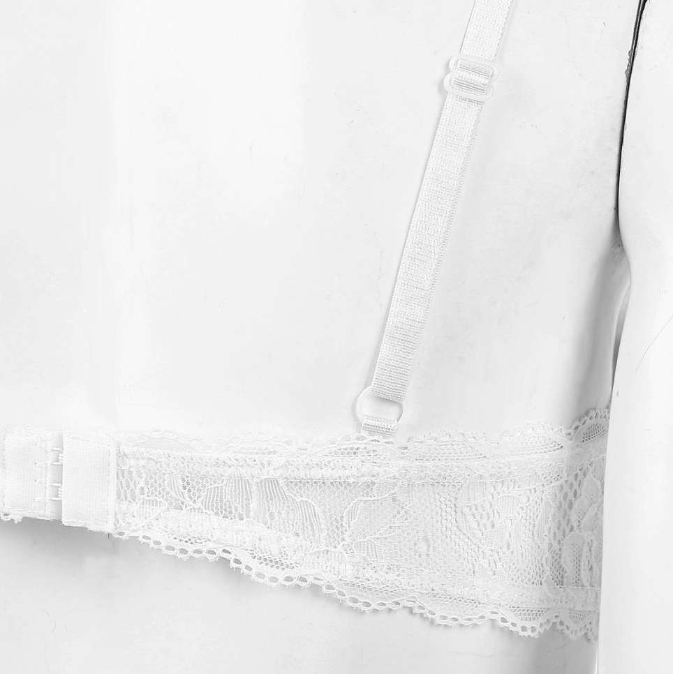 Découvrez ce soutien-gorge coquin en dentelle blanche sous les seins.